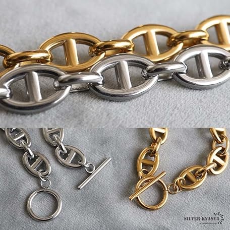 Thông tin sản phẩm silver KYASYA Stainless Steel Anchor Chain Bracelet, Mantel Bracelet, 0.4 inches (10 mm), Gold, Silver, Chain, Anchor, Popular, Trend, Fashionable, Stylish, Hypoallergenic