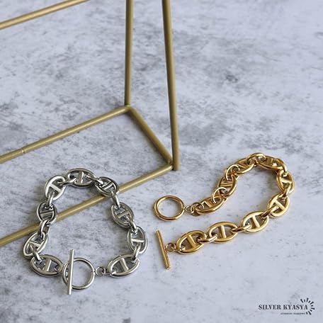 silver KYASYA Stainless Steel Anchor Chain Bracelet, Mantel Bracelet, 0.4 inches (10 mm), Gold, Silver, Chain, Anchor, Popular, Trend, Fashionable, Stylish, Hypoallergenic