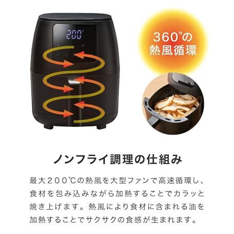 simplus ノンフライヤー 2L 大容量 デジタル式 グリルプレート2種付き エアフライヤー 電気フライヤー 低カロリー ヘルシー オイルカット 冷凍食品 シンプラス SP-FR02 コンパクト ひとり暮らし 家庭用 (タッチ式/2L)