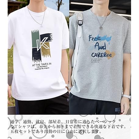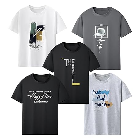 Thông tin sản phẩm SIPERLARI Men's Short Sleeve T-shirt Set, 5-piece Set, 100% Cotton, New Design, Print, Large Size, Sweat Stain Prevention, Thick Fabric, Crew Neck, Antibacterial, Deodorizing, Soft, UV Protection,