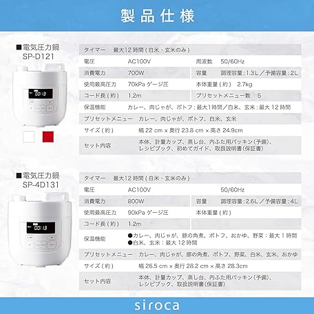 Sản phẩm SIROCA 〔展示品〕 電気圧力鍋 ホワイト[圧力/無水/蒸し/炊飯/温め直し/コンパクト] siroca ホワイト SP-D121 đang được bán với giá ưu đãi là $85.5541 tại nước Nhật.