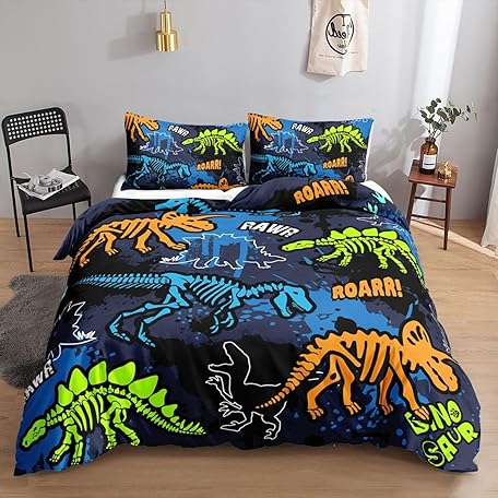 SJSXWQN布団カバー シングル 恐竜の化石 枕カバー 付掛け布団カバー シングル 通気性 ポリエステル抗菌防臭 防ダニ 布団カバー(150x210cm)+ 2枕カバー(43x63cm)