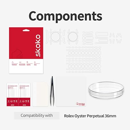 skoko [1セットフルパッケージ ボディ保護フィルム ロレックス オイスター パーペチュアル 36mm Ref. 126000 対応 光沢クリアスキン フルカバー 傷跡防止 トリッキーな部分のための予備のピース]