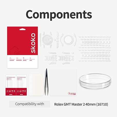 • skoko [1セットフルパッケージ ボディ保護フィルム] ロレックス GMT Master II 40mm Ref. 16710 対応 ディテールエキスパートバージョン 光沢クリアスキン フルカバー 傷跡防止 トリッキーな部分のための予備品