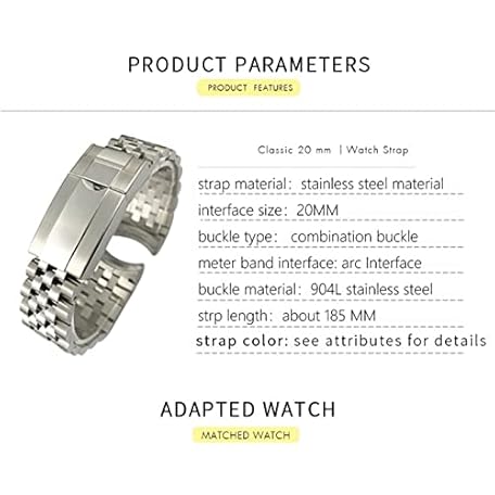 [SKXMOD] 20mm 904L Solid Stainless Steel Strap Rolex Strap GMT Master II Watch Strap Bracelet Jubilee Replacement with Oyster Clasp