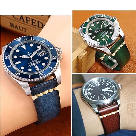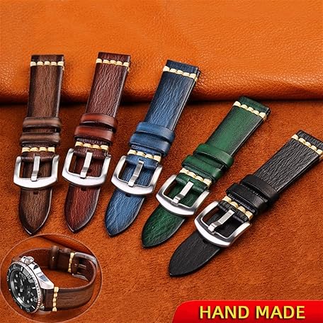 [SKXMOD] Handmade Genuine Leather Watch Strap 20mm 2mm 24mm Mido Huawei GT Men's Watch Band Brown Blue Green Grey
