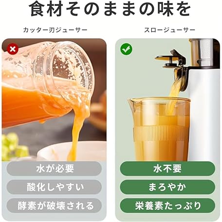 Sản phẩm スロージューサー 搾りカス分離 低速回転 ジューサー 小型 ミキサー 高い搾汁率 酸化しにくい コンパクト フルーツ 野菜 ビタミン 酵素 鮮度キープ フレッシュジュース レシピ付き 日本語取扱説明書 đang được bán với giá ưu đãi là $72.7248 tại nước Nhật.