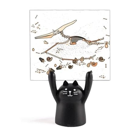 骨の小型恐竜の化石 カートゥーン黒猫スタンド型メモホルダー装飾