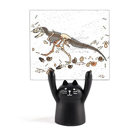 Small Dinosaur Bone Fossil Cartoon Black Cat Stand Memo Holder Decoration