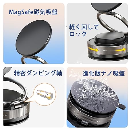 Sản phẩm Smartphone Holder, Car Magnet, 2025 Magsafe Holder, 360° Adjustable, Vacuum Suction Cup + Super Strong Magnetic Force, N55 Magnet, Car Accessories, Premium Alloy Material, Car Use, One-Handed đang được bán với giá ưu đãi là $12.3061 tại nước Nhật.
