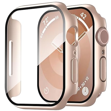 Smiling Packケース Apple Watch Series 10 46mm (2024) 対応 強化ガラススクリーンプロテクター ハードPCケース全体保護カバー - ローズゴールド1枚 + 透明1枚