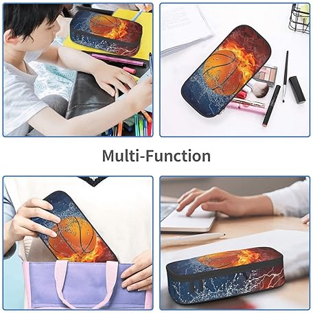 • SNAPMADEスポーツペンシルケース クールペンシルボックス ポータブルペンバッグポーチ ファスナー付き ティーンズ 男の子 女の子 文房具用品 オーガナイザー 多機能バッグ ビジネスオフィス用, バスケットボール, 8.3 x 3.7 x 2 inch, ポータブル、シンプル、旅行。