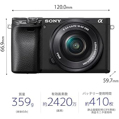 Thông tin sản phẩm Sony ILCE-6400L B Alpha 6400 Mirrorless SLR Digital Camera, Power Zoom Kit (Included Lens: SELP1650), APS-C, Black