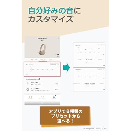 • Sony Wireless Headphones WH-CH520: Bluetooth Compatible, Lightweight Design, Approx. 5.1 oz (147 g) / Compatible with a Dedicated App to Customize Your Favorite Sound Quality with "Equalizer"
