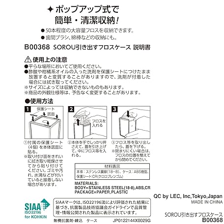 Thương hiệu レック(LEC) là cái tên nổi tiếng được rất nhiều khách hàng trên thế giới chọn lựa. Với kiểu dáng đẹp mắt, sang trọng, sản phẩm SORO:U Stainless Steel Drawer Floss Case (Antibacterial Tray), For Storing Interdental Brushes, Cotton Swabs, Etc là sự lựa chọn hoàn hảo nếu bạn đang tìm mua một món cho riêng mình.