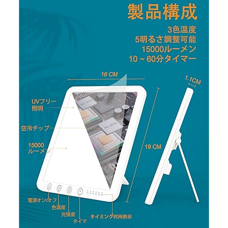 Thông tin sản phẩm Sotipevs High Brightness Light, UV Free, 15,000 Lux Adjustable, Bright Light, Bedside Lamp, LED Daylight Lamp, Adjustable Color Temperature, Brightness, Suitable for Office, Jet Lag, Reading, Yoga,