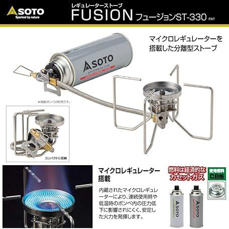 Sản phẩm SOTO FUSION ST-330 Single Burner with Regulator (High Heat Power, Wind Resistant), CB Can, Separated Type, Solo Duo Group Camping Regulator Stove, Made in Japan đang được bán với giá ưu đãi là $67.4492 tại nước Nhật.