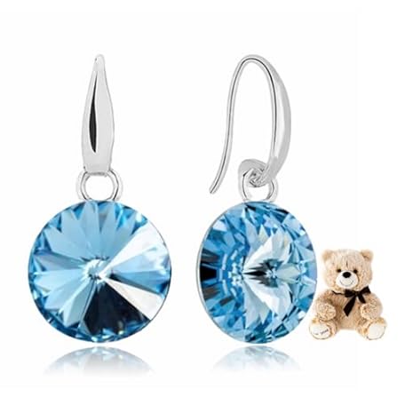 Spark KW112212AQ-B Earrings, Present, Aquamarine, March Birthstone, Color, Swarovski Crystal, Women's, Girlfriend, Wife, Daughter, Birthday, Anniversary, Celebration, Wrapping, Bear, Sterling Silver,