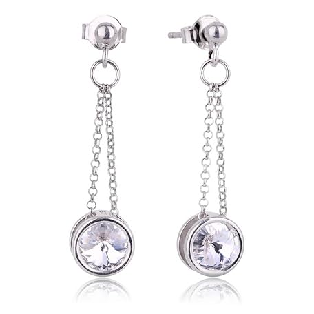 Spark Swarovski Crystal Chain Earrings Dangling Diamond April Birthstone Color Birthday Present Girlfriend Wife KWR1122SS29C, Crystal, Swarovski® Crystals