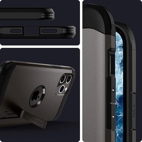 Thông tin sản phẩm Spigen ACS01625 iPhone 12Pro Max Case, Shockproof, US Military MIL Standard Listed, Stand Included, Triple Layer Construction, Stand Included, Smartphone Stand, Camera Protection, Scratch Resistant,