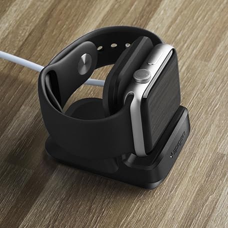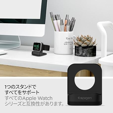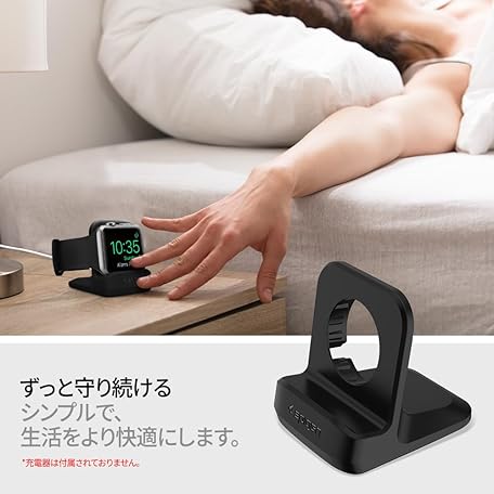 • Spigen Apple Watch 充電 スタンド Apple Watch Ultra 2/1, Apple Watch 10/9/8/7/6/5/SE/4/3/2/1 対応 滑り止め 充電スタンド 充電 クレードル ドック SGP11584 (ブラック)