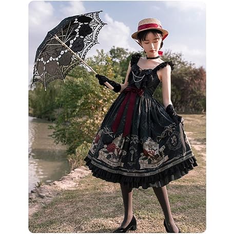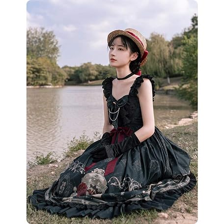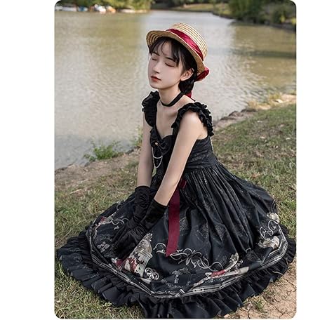 Thông tin sản phẩm SSUPTEMBER2 Lolita One-Piece Halloween Costume, Cosplay Gothic Black Lolita, Forest Girl, Girl, Ruffle, Ribbon, Summer, Cosplay, Lolita, Tea Party, Commute, School Festival, Cultural Festival, Dating