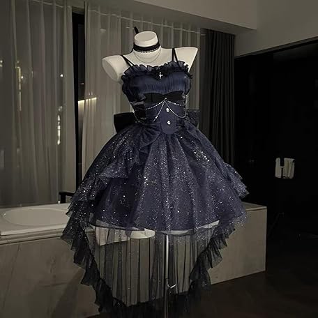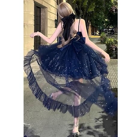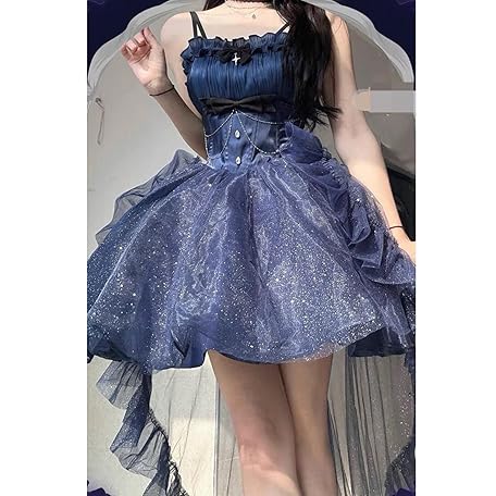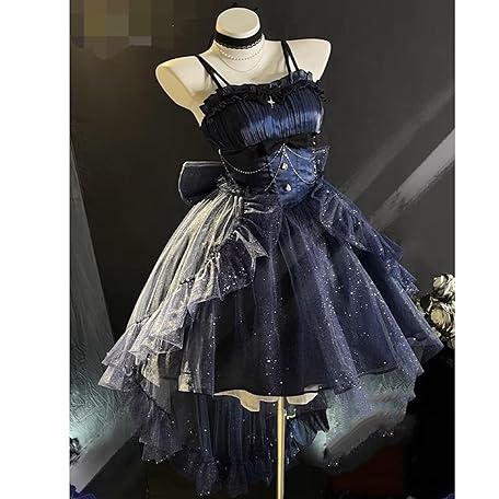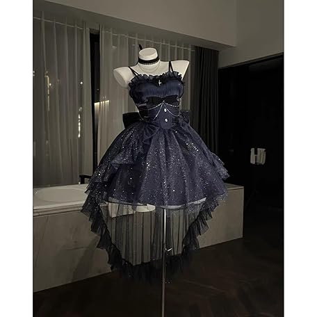 • SSUPTEMBER2 Lolita Style Camisole Dress, Double Strap, Tulle Dress, Large Size, Princess Dress, Mass Production, Mori Girl, Yume Cute, Cosplay Costume, Navy Blue, Beige, Frill, Volume, Ribbon,