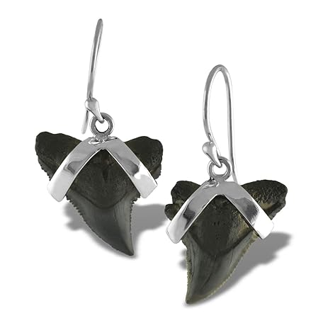 Starborn ☆ Giant Great White Shark Tooth Fossil Earrings / Sterling Silver (Silver925), Stone, Shark Tooth