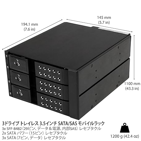 • StarTech.com HSB3SATSASBA 3x 3.5" SAS 2.0/SATA 3.0 Hard Disk Drive Mobile Rack No Inner Tray Required Hot Swap