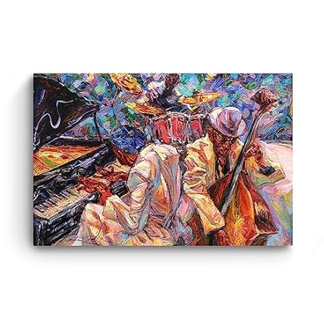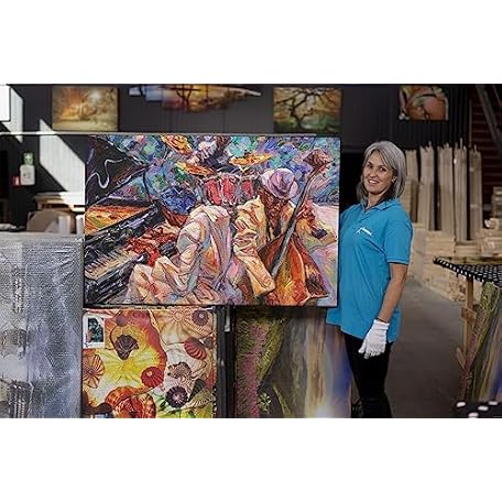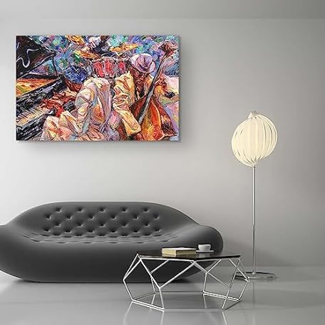 Thông tin sản phẩm Startonight Canvas Wall Art Abstract - Orange Jazz Orchestra Music Painting - Stretched Print, Modern Bedroom Living Room Office Unique Bright Artwork 80cm x 120cm Romantic Atmosphere, Luxury Decor, Lighted Canvas Wall Painting, Illusion Design, Night Atmosphere