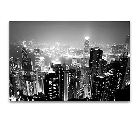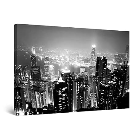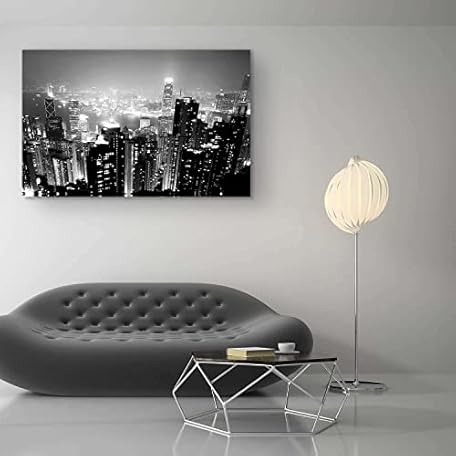 Thông tin sản phẩm Startonight Canvas Wall Art Black and White Abstract Skyscrapers and Lights, Framed Artwork Picture Decor for Living Room, Unique Light Up Wall Art, Minimalism Art 80cm x 120cm Romantic Atmosphere