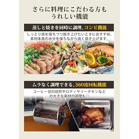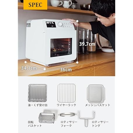 • Steam Non Fryer, Finom Household Non-Fry Oven, Rebake, Convection Oven, Air Fryer, Electric Fryer, Rotisserie, Steamed, Grilled, Frying, Large Capacity, 3 - 5 Servings, 3.1 gal (15 L),