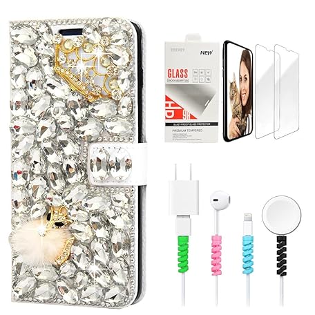 STENES Bling 財布型ケース - スタイリッシュ - 3D ハンドメイド クリスタル 磁気デザイン レザーカバー スクリーンプロテクター&ケーブルプロテクター付き - SSBLDwSPCPシリーズ-26 Design for Google Pixel 3a XL SSC96551