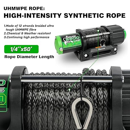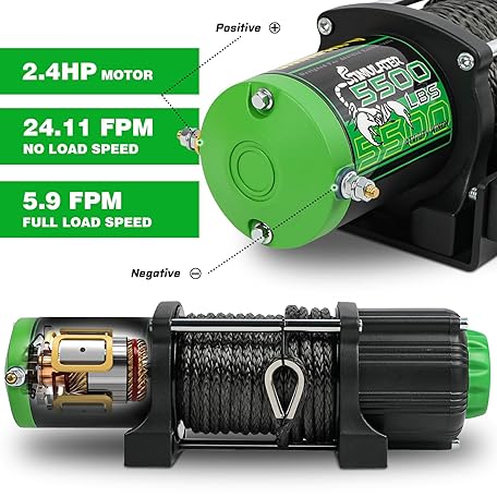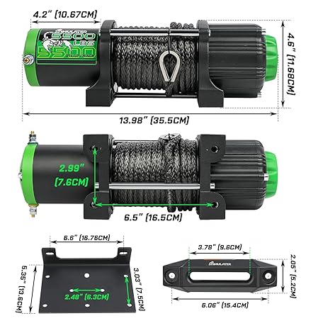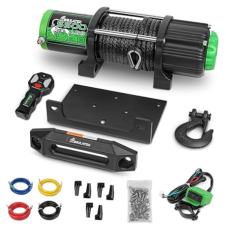 Thông tin sản phẩm Stimulator 5500lb ATV/UTV Winch, 12V Electric Winch, 1/4" x 50' Winch with Synthetic Rope, Wireless Remote and Wired Switch, Hawse Fairlead & Hook, IP67 Waterproof, Fits Most ATV and UTV