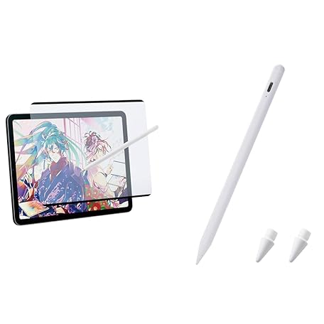 [Stylus Set] Elecom iPad Pro 11 4th/3/2/1 Generation, Air 4 10.9 5/4th Generation (2022/2020) Paper Texture Film Paper-like Drawing Feel, Removable Kent Paper + iPad Touch Pen (11 Inch (A16), Pro 11