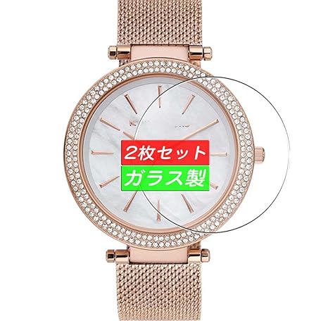 二枚 Sukix ガラスフィルム 、 Michael Kors Darci MK3416 MK3191 MK3190 MK4519 MK3192 MK4518 MK3203 向けの 強化ガラス フィルム 保護フィルム 保護ガラス ガラス 液晶保護フィルム シート シール スマートウォッチ 時計 と互換性のある 腕時計用 円盤 ( 非 ケース カバー ) 修繕版