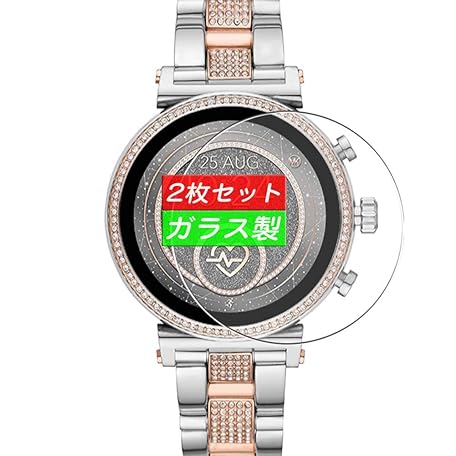 二枚 Sukix ガラスフィルム 、 Michael Kors MKT5064 向けの 強化ガラス フィルム 保護フィルム 保護ガラス ガラス 液晶保護フィルム シート シール スマートウォッチ 時計 と互換性のある 腕時計用 円盤 円盤 適用 専用 ( 非 ケース カバー ) 修繕版