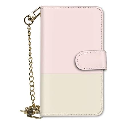 Suma Tsu Smartphone Case -card Pixel 3a XL (G020D) Compatible Folio Case Mirror & Card Storage Stand Function Strap Hole (Gold Chain) Korean Style Simple Bicolor (H. Beige x Baby Pink)