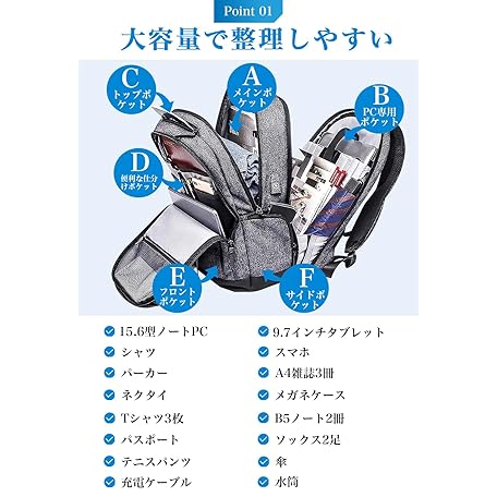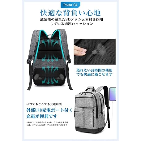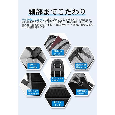 [SUNOGE] リュック ビジネスリュック バックパック リュックサック 防水 撥水加工 大容量 軽量 メンズ レディース 兼用 バッグ pc リュック USB ポート搭載 多機能 通勤 通学 旅行 出張 人気 耐衝撃 おしゃれ