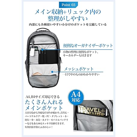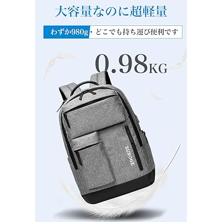 • [SUNOGE] リュック ビジネスリュック バックパック リュックサック 防水 撥水加工 大容量 軽量 メンズ レディース 兼用 バッグ pc リュック USB ポート搭載 多機能 通勤 通学 旅行 出張 人気 耐衝撃 おしゃれ