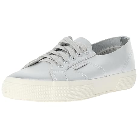 Superga 2750 Metallic Nappa Leather Sneakers, grey silver/avolio, 23.5 cm