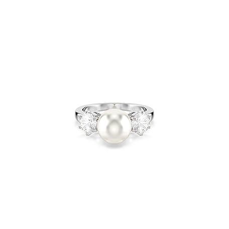 • Swarovski Matrix Ring, Crystal Pearl, Round Cut, Clear, Rhodium Finish, Crystal Cubic Zirconia, Crystal Cubic Zirconia