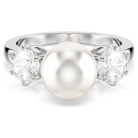 Swarovski Matrix Ring, Crystal Pearl, Round Cut, Clear, Rhodium Finished, US 7/EU 55, Crystal Cubic Zirconia, Crystal Cubic Zirconia, Crystal Cubic Zirconia, Crystal Cubic Zirconia