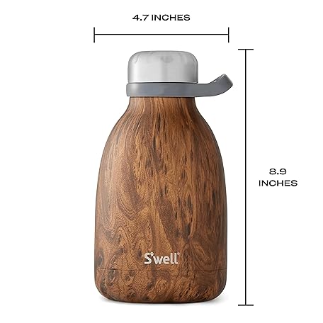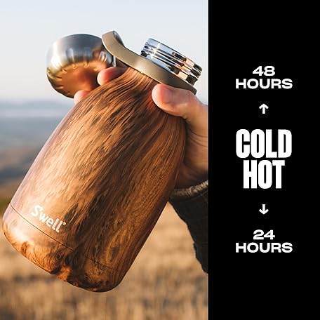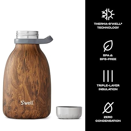 Thông tin sản phẩm S'well Stainless Steel Romer Bottle, 40 oz, Teak Wood Triple Wall Vacuum Insulated Container, Keeps Drinks Cold for 48 Hours, Hot for 16 Hours, BPA Free