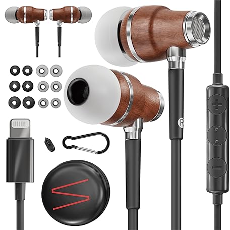 Symphonized Premium Wood iPhone Earphones Wired (Apple MFI Certified) Deep Bass Sound 3D Sound Microphone Volume Control 90% Noise Cancelling Lightning Earphones for iPhone SE-14