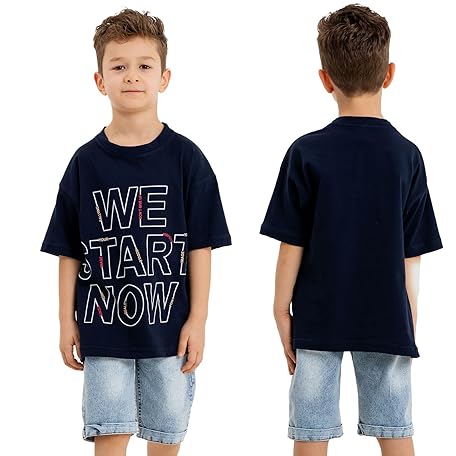 ゴールドクラス キッズウェア ボーイズ サマーセット コットン Tシャツ デニム ショート ボーイズ カジュアル アウトフィット トレンディ, ネイビーブルー, 6-7 Years Old