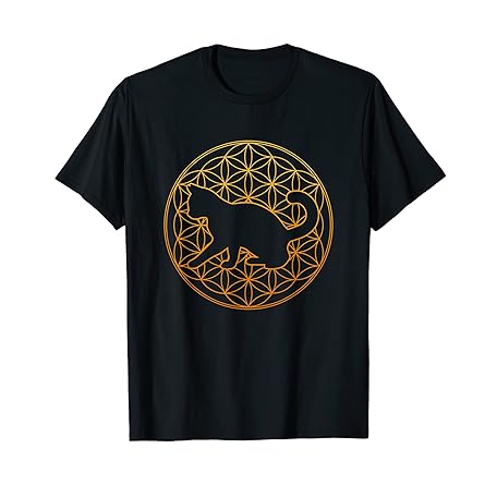 猫とフラワーオブライフ神聖幾何学 Tシャツ