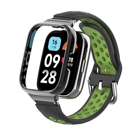 [T-BLUER] Leather Strap Compatible with Redmi Watch 3 Active, Silicone Breathable Two-Color Bracelet Accessory with Metal Protective Frame for Redmi Watch 3 Active