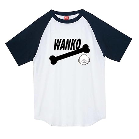 [ユニティーズプラス] Tシャツ ラグラン半袖 WANKO ワンコ オールド イングリッシュシープドッグ 骨 犬好き 犬 いぬ イヌ ドッグ メンズ ユニセックス ホワイト×ネイビー XLサイズ anml00017-1