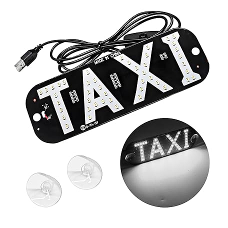 Taxi LED Sign Decoration, 5V USB Bright Taxi LED Windscreen Cab Indicator Lamp Signal, Vibrant Taxi LED Sign Decoration, with Clear Suction Cup for Driver(White, USB)